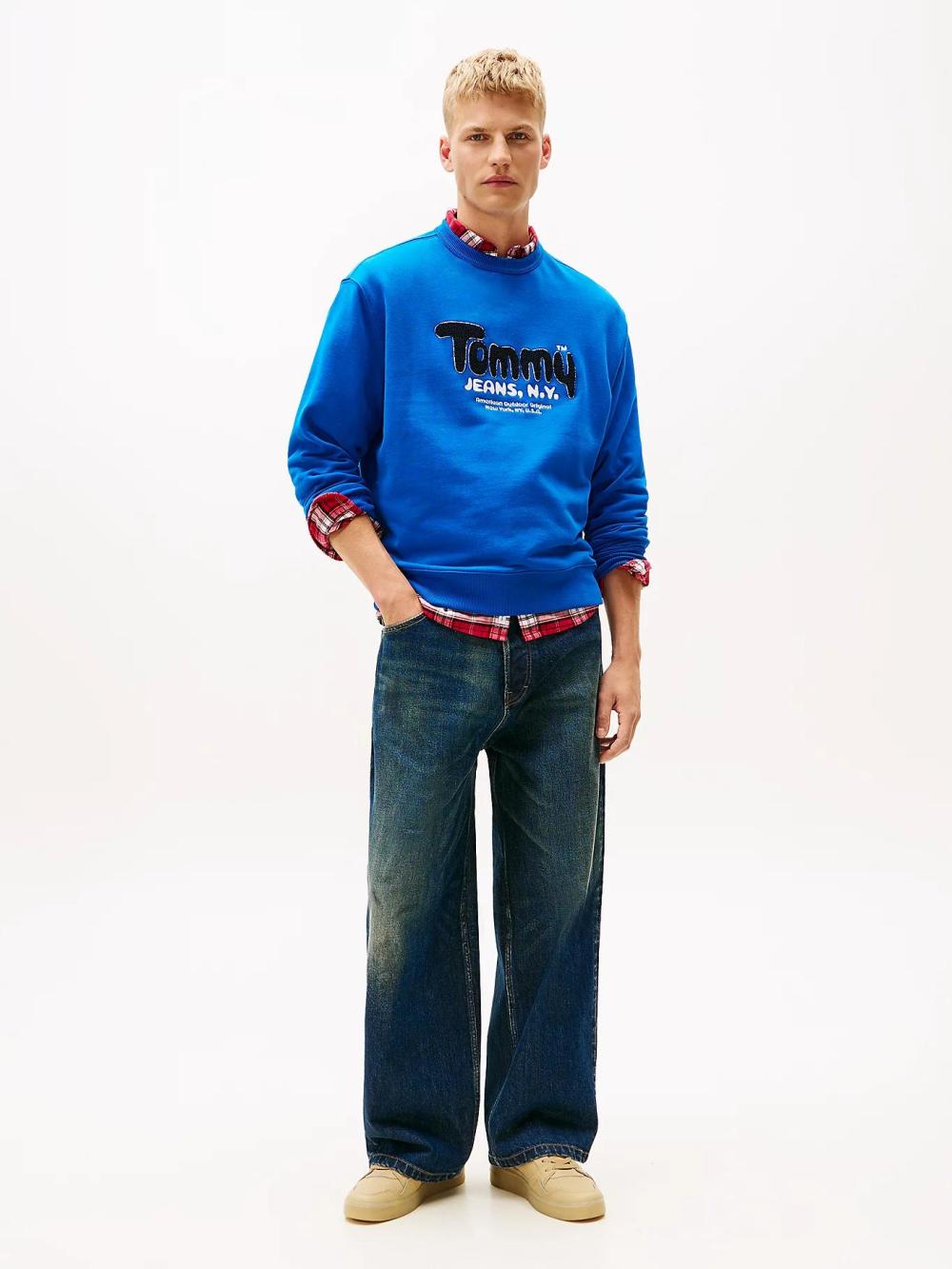 Tommy Jeans crewneck Boucle front Vibrant indigo