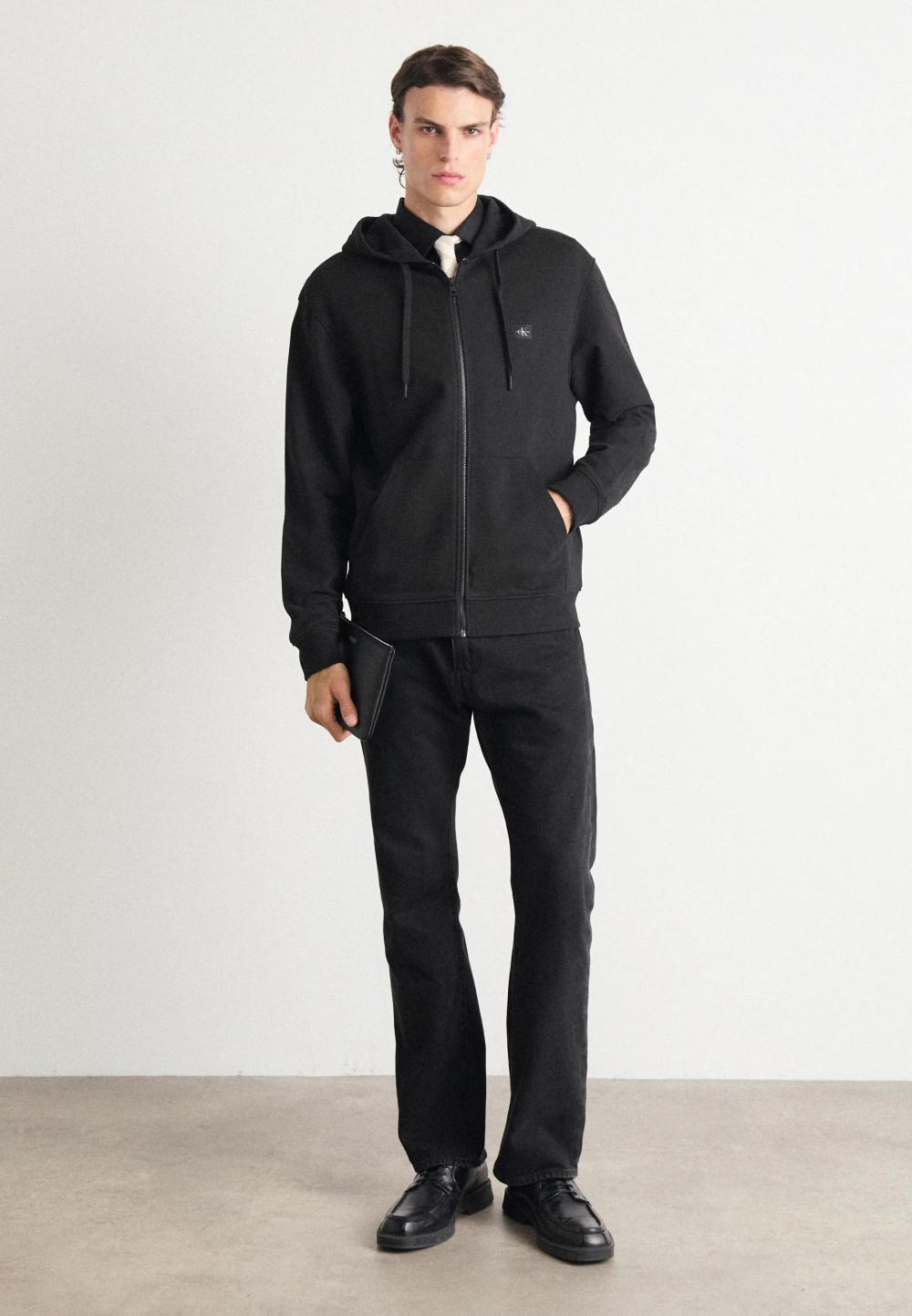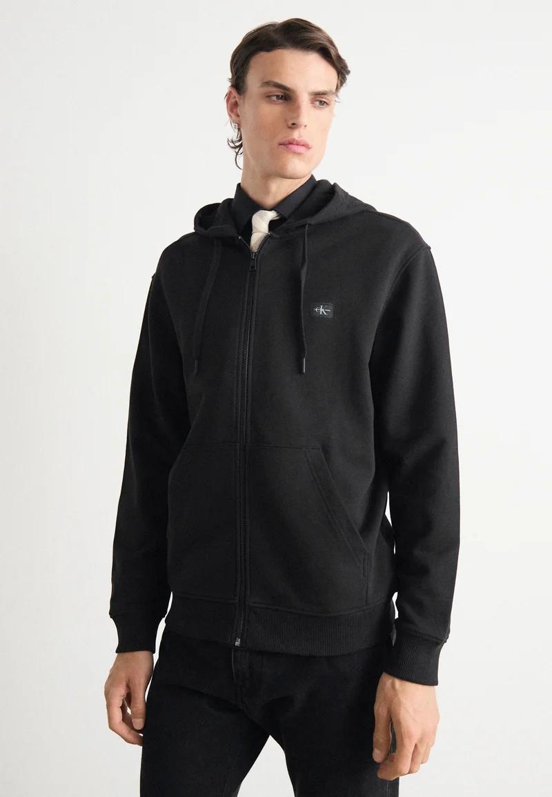 Calvin Klein Woven Label Zip Trough Black