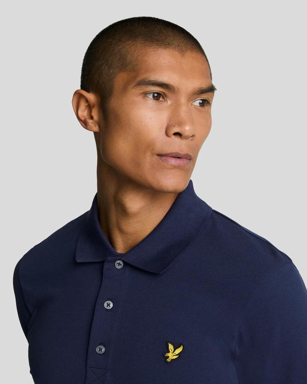 Lyle & Scott Plain Polo Shirt Navy (SP400VOG). Klassieke blauwe polo met comfortabele pasvorm en iconisch arend-logo. Voorzien van kraag en knoopsluiting.